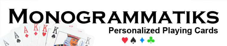 OUR SERVICES:Monogrammatiks can take your creative vision and make it a reality with glossy, casino-quality playing cards printed with your family photos or company logos. Our decks of cards are customizable in a host of ways: